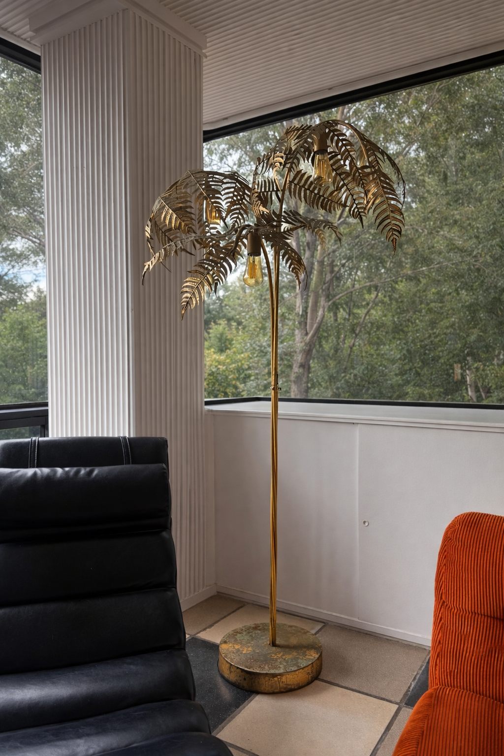 Palm tree lamps like this became iconic during the 1960s and 1970s, when designers embraced tropical motifs and metallic finishes to evoke luxury interiors reminiscent of Beverly Hills and Palm Beach.
