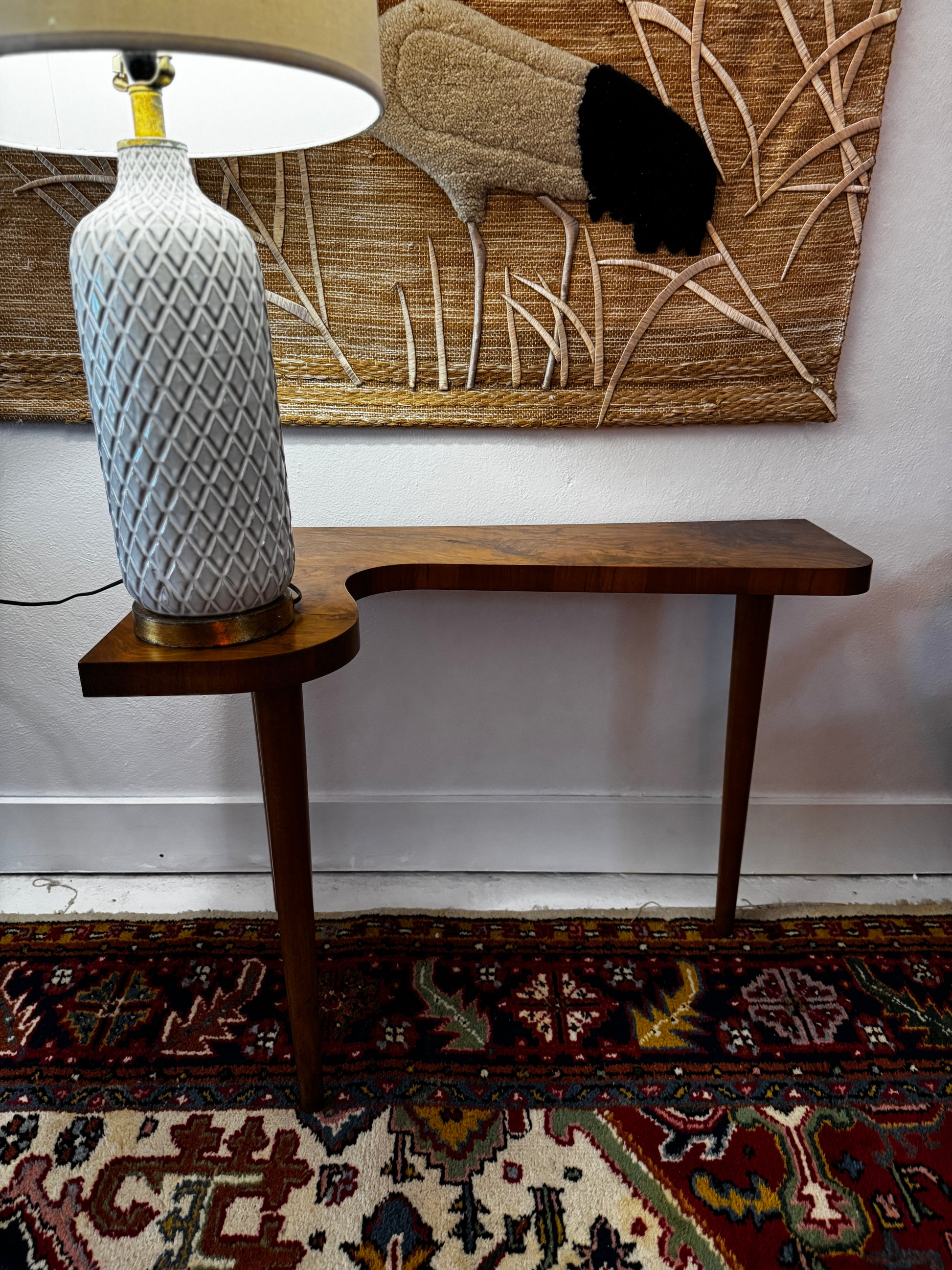 Each table is elevated on slender, tapered legs that create a sense of lightness and balance, allowing the sculptural tops to visually float within a space. The asymmetrical contours and precision craftsmanship reflect Kafka’s refined modernist approach—where material, form, and function are in quiet dialogue.