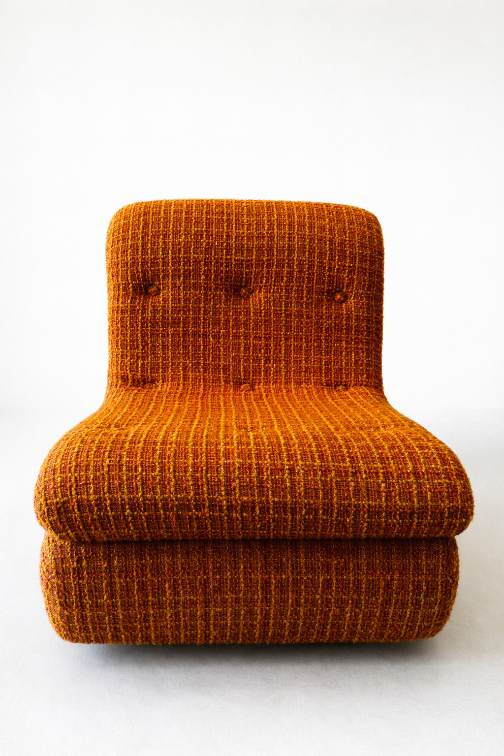 A striking and deeply comfortable 1970s lounge chair with a beautifully sculpted, low-slung profile that perfectly captures the relaxed confidence of the era.