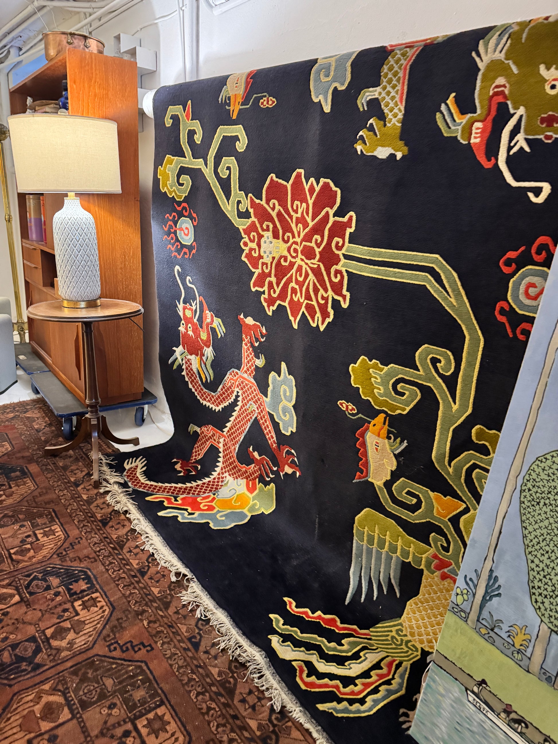 Vintage Tibetan dragon area rug