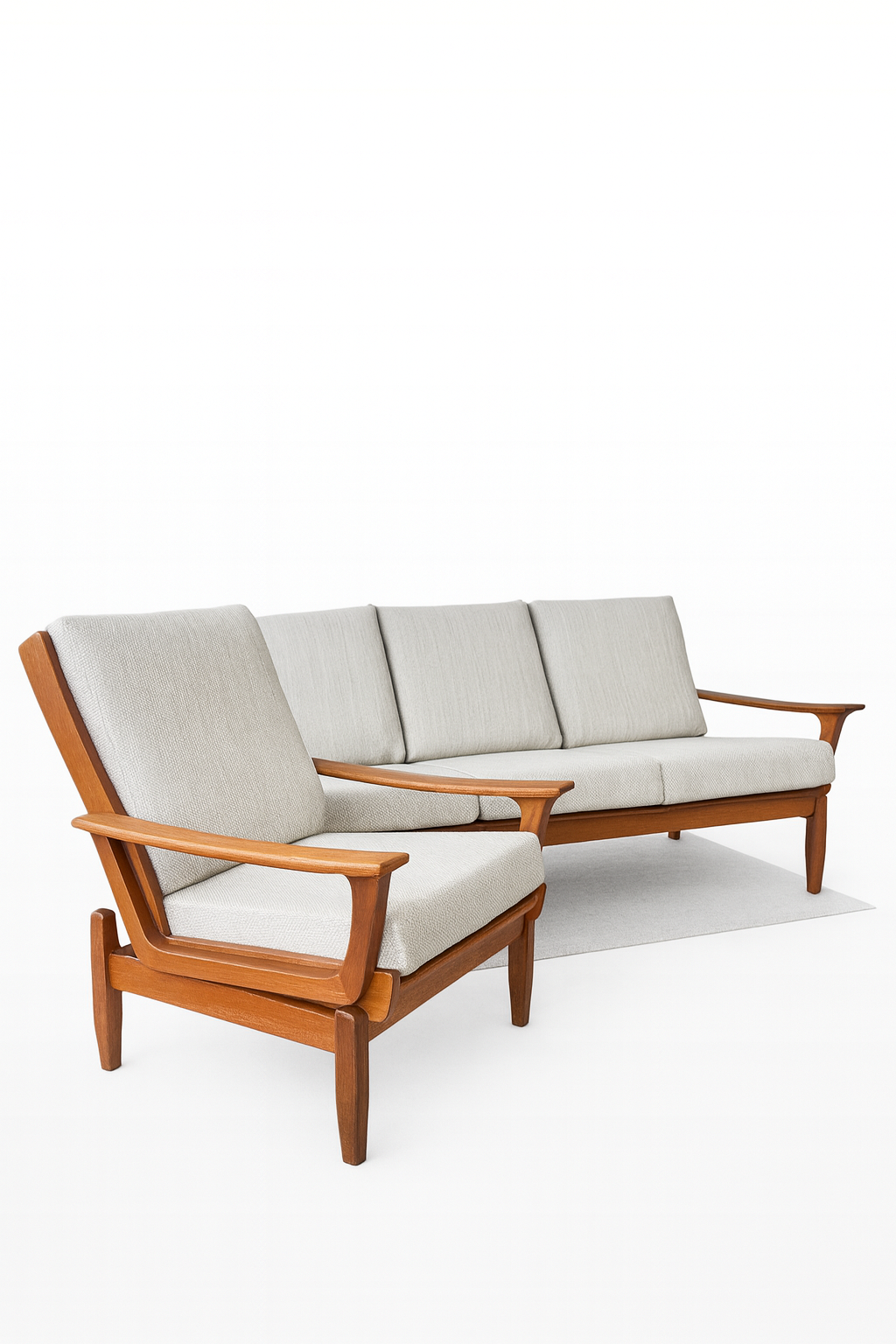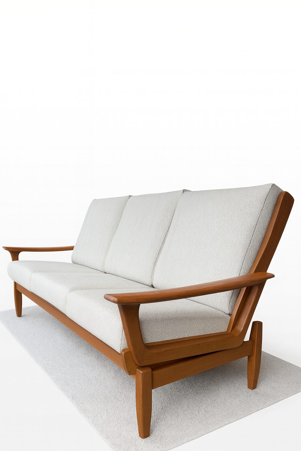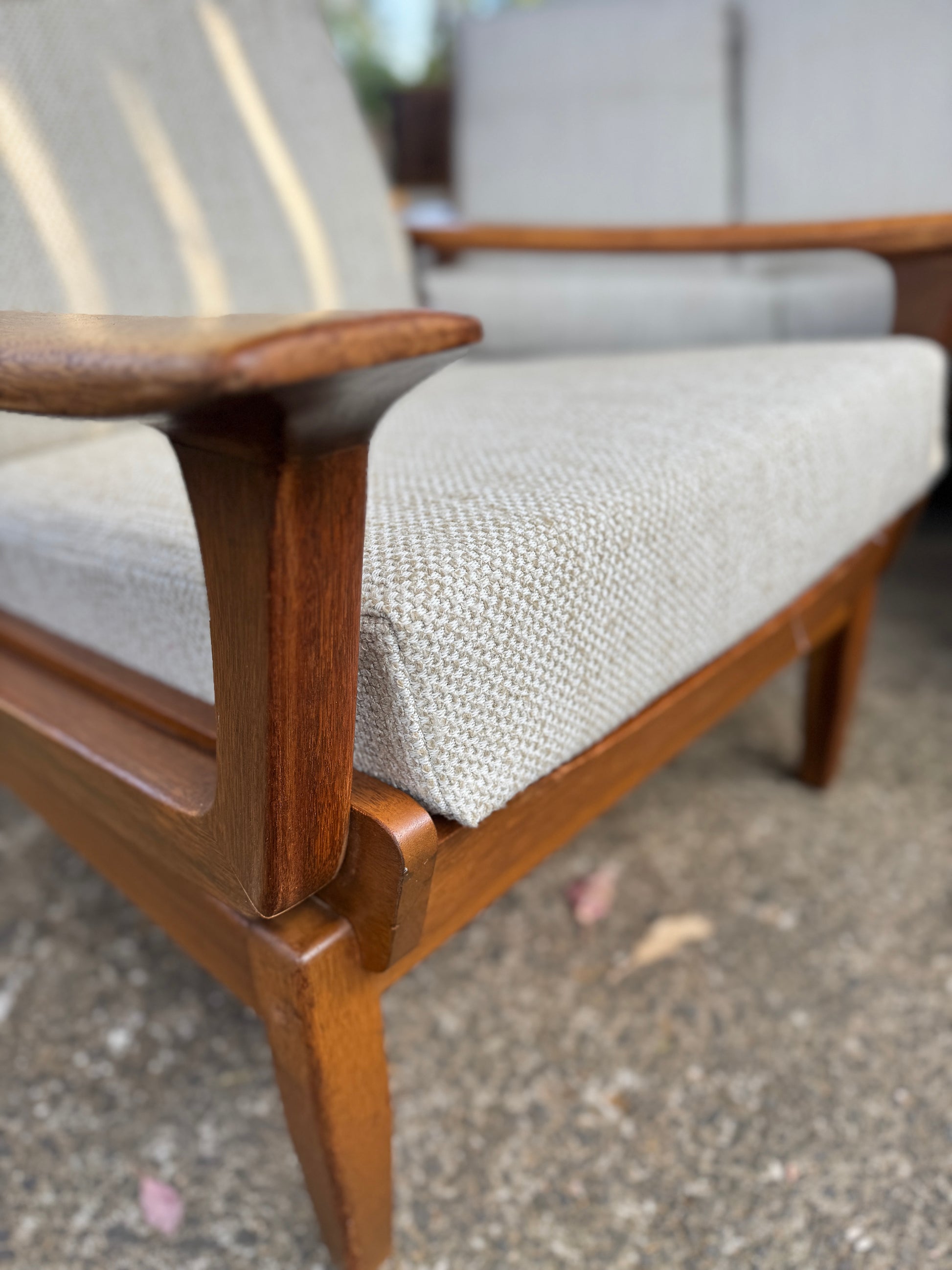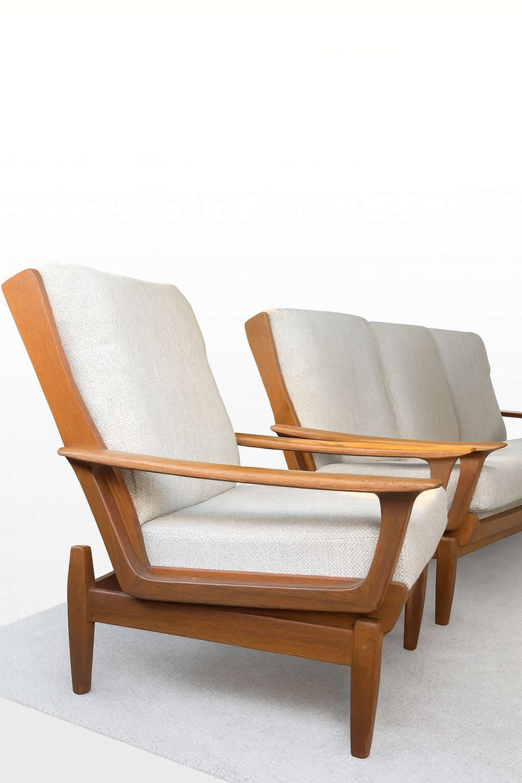 A super rare complete lounge suite by Melbourne maker Wrightbilt, comprising a three-seater sofa and two matching armchairs. Very few Wrightbilt suites have survived intact, making this an exceptional opportunity for collectors and design enthusiasts.
